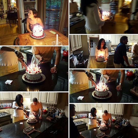 The festivities lasted all weekend, starting with a girls' day of manicures, Starbucks, and shopping. Saturday was date night with Cam, and then last night we had a great dinner at our neighborhood habachi grill, Fuji Hana, followed by gifts, cake, and a mean game of Pictionary. (Bill and I came VERY close to beating those whippersnappers!)