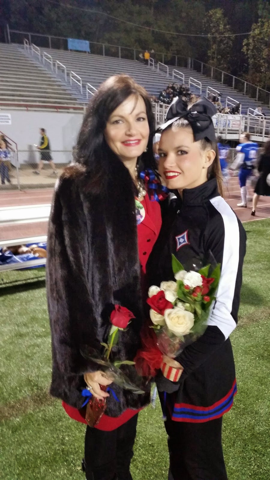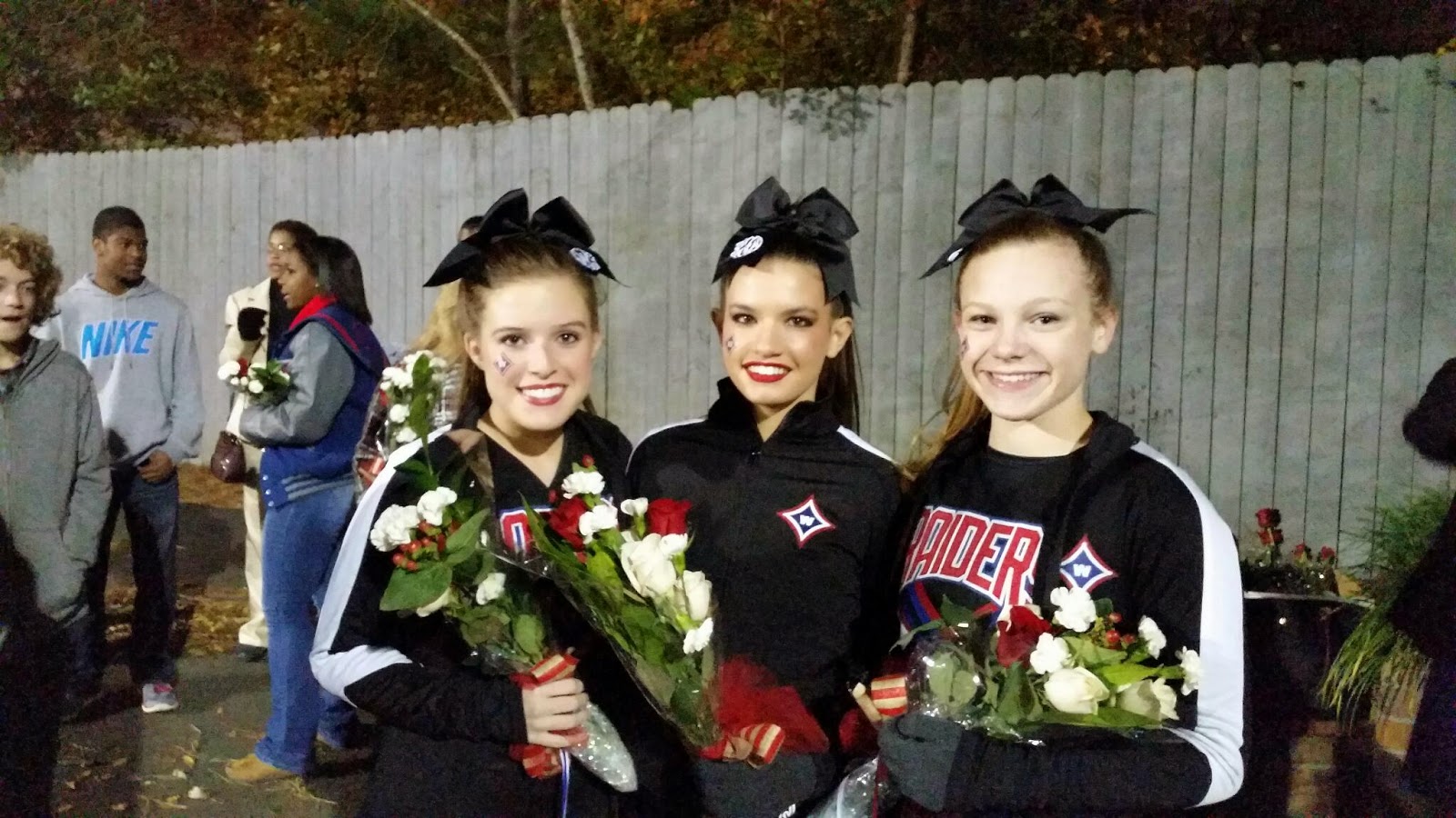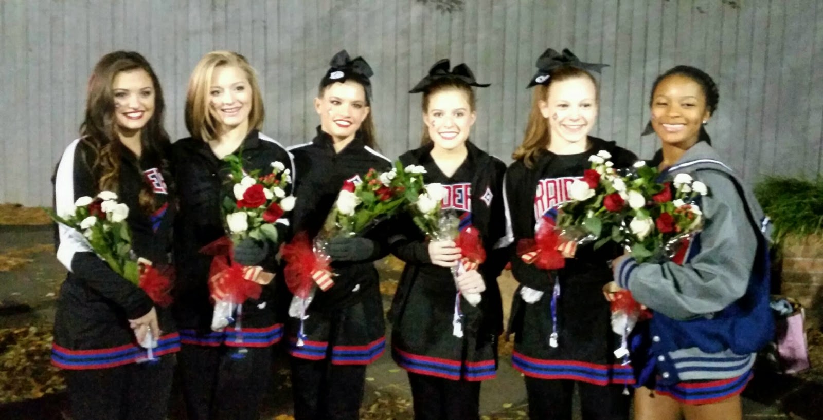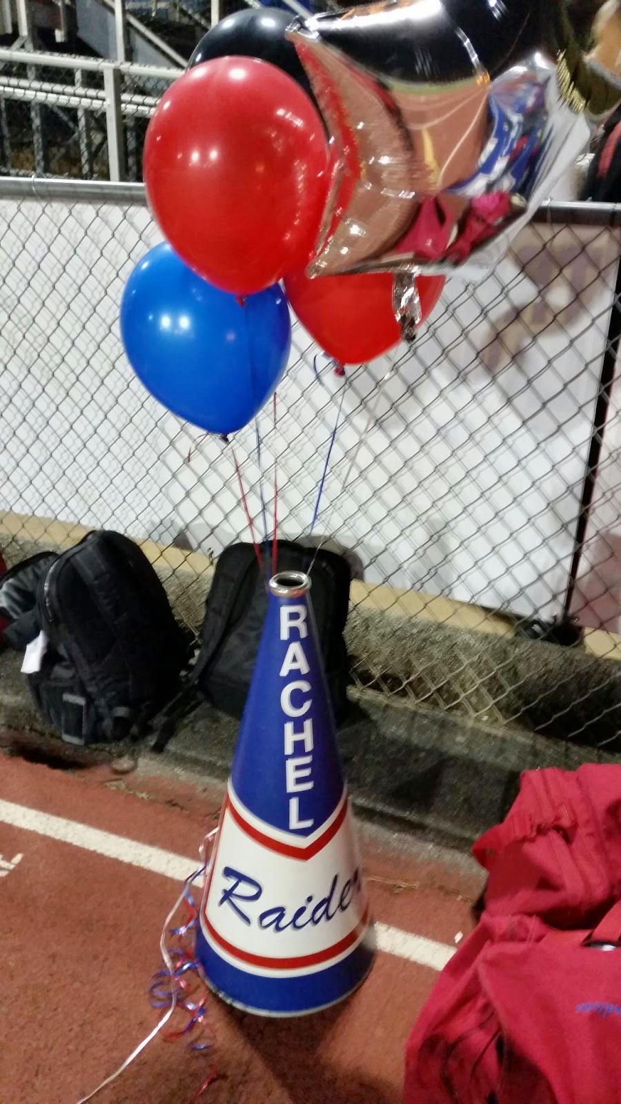 Last football game at Raider Valley celebrating Rachel 's senior year. It was a cold night but lots of fun even though the team lost. I've so enjoyed these many years of watching my baby cheer to enthusiastic fans. All started many years ago in elementary school. Can't believe how time flies!