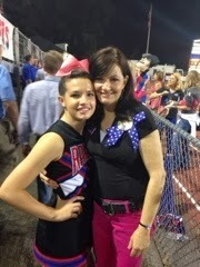 My varsity cheerleader, Rachel, and her friend, Anna Grady. You don't know what coaxing it took to get this picture, since cheerleader moms are supposed to be seen and not heard! Having a great time and the Raiders are up by one point at the half. Always a lot of fun to watch a game in the Dome!.
