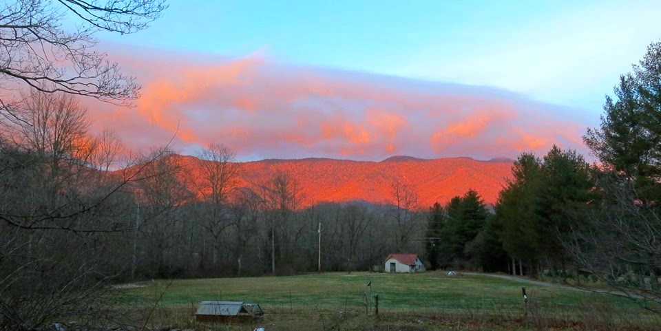 The cold front builds with the assuredness of a novel. I go on my longest runs during peak warmth come mid-afternoon--a few miles down the mountain and into the valley, through rhodi thickets and over icy creeks. Oak leaves, a coffee brown carpet across the forest floor. There, a friend takes a photo from his porch and captures the polar vortex as it gathers, high and mighty. My runs take me from halfway up these peaks, into the valley, and to this very spot (then around a loop again):
