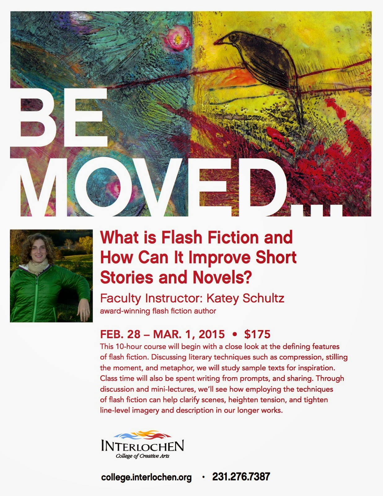 I'm delighted to announce I'll be teaching weekend and week-long courses at Interlochen College of Creative Arts on 4 occasions in 2015, the first of which is a very special weekend all about flash fiction, full scene, and how these skills can improve short stories and novels. Here's the full schedule and course registration links, and the flyer is below. It's winter, it's up north, and it'll be cold...but if you're like me, you may find that a blanket of white, a quiet artful campus, and all the permission that darkness affords are a perfect chemical mix for writing. I hope some readers of The Writing Life blog will consider joining me: