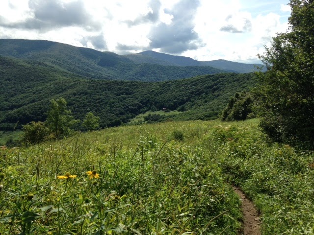 Hiking the Roan highlands to reach the highest point of the Appalachian Trail this week.To that end, I took 2 days/1 night off this week to hike 22 miles on the nearby Appalachian trial with two friends who will also go on The Wonderland trip. Out there in the clouds, we soaked ourselves with our own sweat (thanks to 90% humidity) and by day's end our skin was salty enough for a horse to lick. But the clouds parted as we crossed the Roan highlands and grassy balds. I've hiked this stretch of the trail probably half a dozen times since moving to Western North Carolina and it never ceases to inspire. I feel so fortunate that it's all less than an hour away.