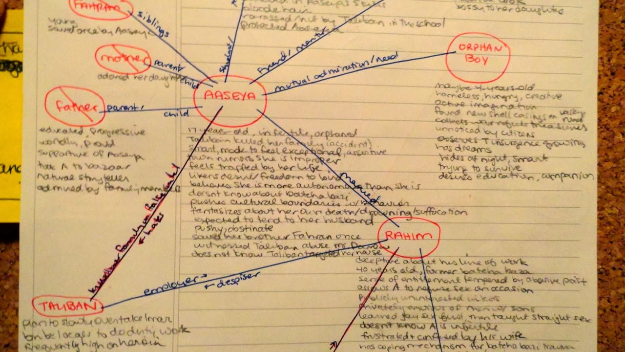 Aaseya & Rahim have drastically different relationships with the Taliban; Rahim never new Aaseya's siblings; Rahim hasn't met the Orphan Boy yet; and the characters with slashes through their names are dead.