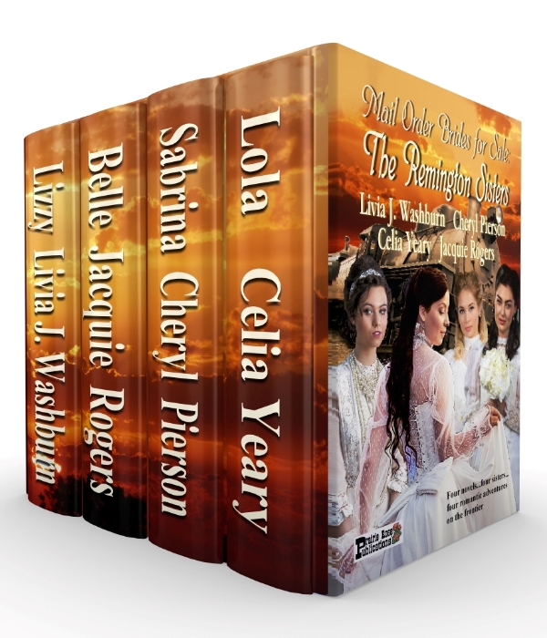 Lizzy is only one book in Mail Order Brides for Sale: The Remington Sisters! It’s on sale now and also contains novels by Cheryl Pierson, Jacquie Rogers, and Celia Yeary.