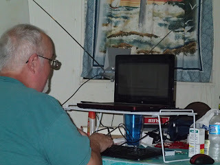 Lunch then back to the cabin to work.After supper in the cabin, we'd read or watch a DVD.