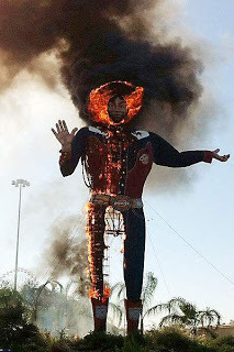 You never know what's going to happen when working on a novel. Facts can change between the time you write the novel and the time it's published. On the 8th Fresh Baked novel, facts changed just as I finished writing the novel. The book is set at the State Fair of Texas. Presently it's titled The Fatal Funnel Cake, which could change. I had just finished a nice scene under the State Fair's legendary Big Tex when I saw on Facebook that he was on fire. How was that possible? He had been around since 1952. I turned on the news and not only had there been a fire, he was basically gone. I was panicked. The book was due to the editor in two days, and I had no idea how this was going to be resolved. I sadly watched as they took Big Tex down the road in the back of a trailer, covered in a shroud. I flipped from channel to channel getting different information from the news. Online I searched hourly for new information. Finally, I'd gathered all that I could and started rewriting, praying I could fake it close enough. I knew I'd have one more chance to make changes when I receive copy-edited manuscript in the summer, but that there was a good chance I wouldn't know any more then. I won't really know exactly how the new Big Tex will look until he's unveiled for the 2013 State Fair of Texas. Still, how weird was it that he'd been around for 60 years and I finish the book he's in and then he's gone? I wonder about these things . . . like why my fortune cookie was empty yesterday . . .