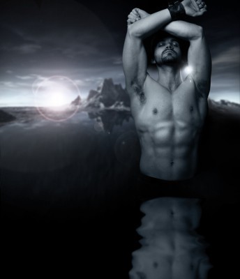 A fantasy-ish pic-- man, merman, something else? A squid shifter.