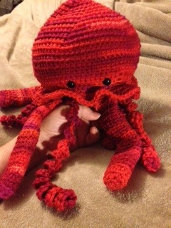 Today I have nothing planned except to write another 12k or so. That right there sort of melts my brain O.o Amber came in a little while ago and gave me a jellyfish she crocheted for me--