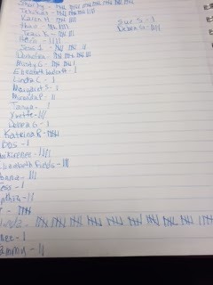 This is becoming a family affair. Amber and the DH sat down to write out all the names, after cutting out dozens of little paper squares. They're so sweet :D ST is sleeping; she had another doctor appointment today for a sinus infection. Kiddo keeps me running. Still has her other two appointments tomorrow, too. But anyway, Amber and DH got to work while I had a lapful of Elijah: