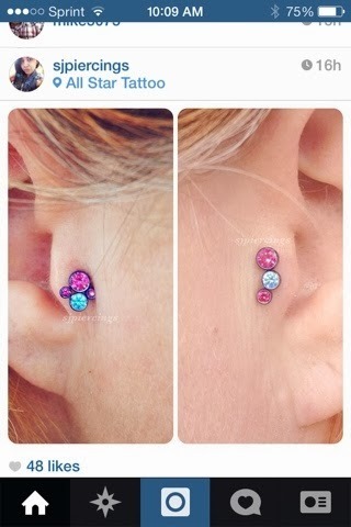 Need to name the tat. I'm leaving toward Gabe just because :-)And Mike's coworker Shanice took care the tragas piercings I've wanted. I had one years ago from a different piercer. That first one didn't work great as the piercer got the needle stuck and it was just a mess. Shanice, however, did an awesome and quick job: