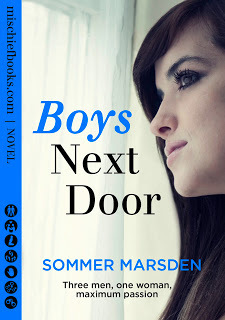 I just so happen to have an excerpt on hand from the inimitable Sommer Marsden. The Book is Boys Next Door. The burb is this:Boys Next DoorThree Men, One Woman, Maximum Passion