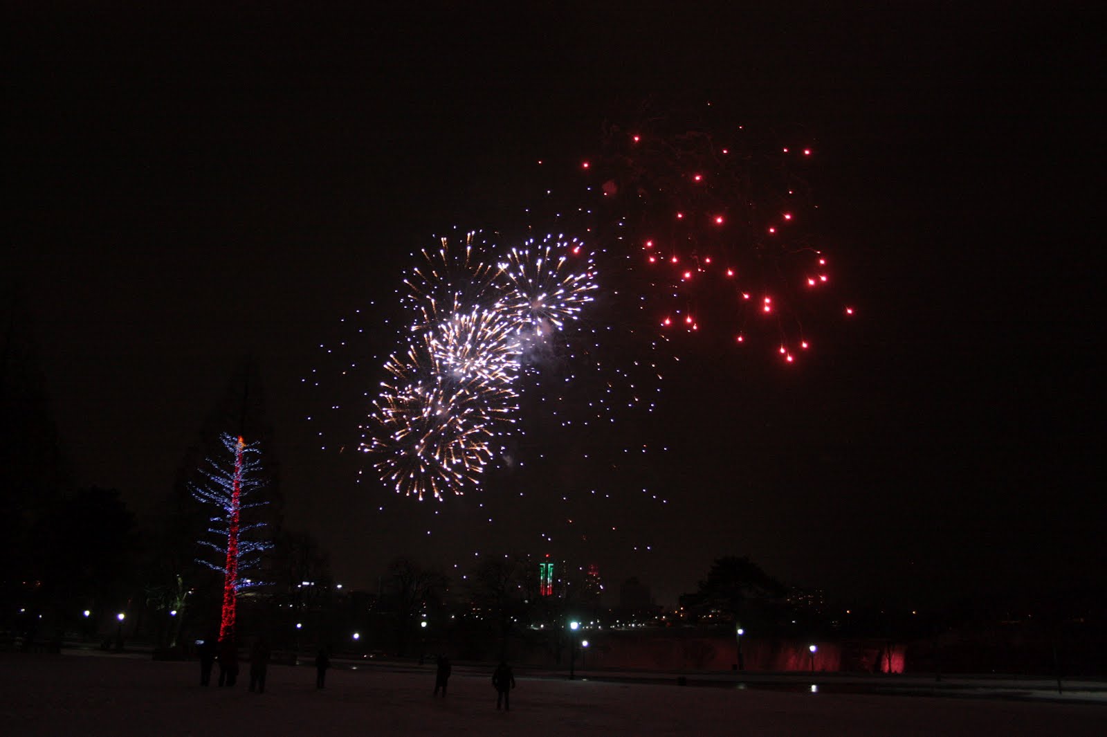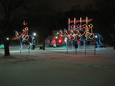 Maybe you've heard of the lights by the falls? Well, most of them are Disney characters and I don't really feel like being sued so I won't post them. But here are some mounties and the coolest fountain I've ever seen (with a ferris wheel in the background):