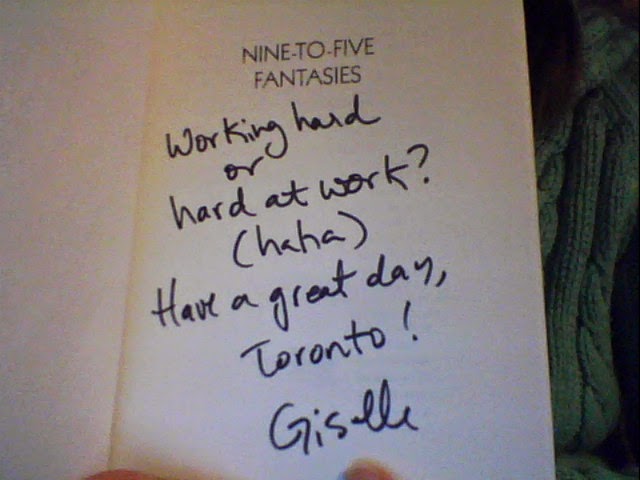 I'm terrible at signing books and writing with Sharpies.Tangentially, I'll mention that Canada Border Services fully investigated the envelope my Nine-to-Five Fantasies arrived in... from both ends! Oooh, that's kinky.