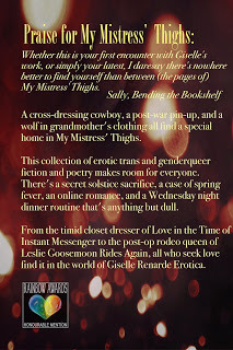 A cross-dressing cowboy, a post-war pin-up, and a wolf in grandmother's clothing all find a special home in My Mistress' Thighs.