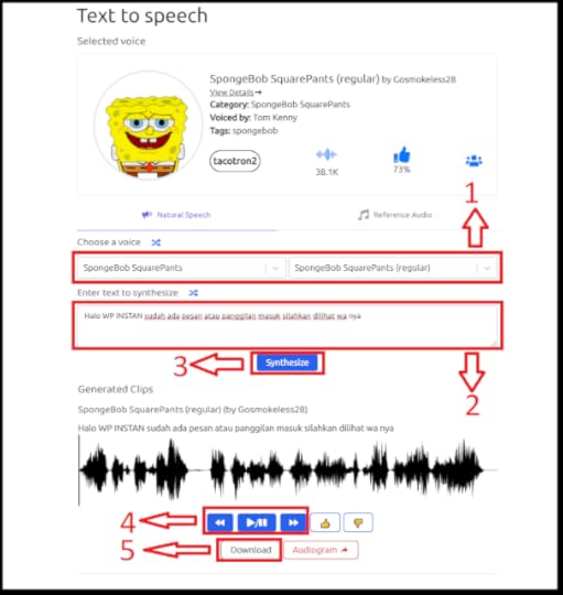 KeteranganTepat divoice silahkan memilih bahasa yang ingin digunakan, contohnya bahasa jepang.Lalu di bagian TEXT TO SPEECH isi tulisan teks atau kalimat dengan jumlah batas maksimal 200 karakter.Setelah itu pilih Conver to voice.Nah, jika anda ingin mendengarkannya pilih PLAY, dan ingin unduh maka pilih Download.Anda tinggal menyimpan file mp3 dari hasil pengubah teks jadi suara jepang untuk dijadikan sebagai nada dering di aplikasi whatsapp.