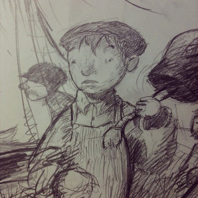 Here's part of a drawing I did, the genie part! This is for a card game I'm contributing to. In fact I've been crazy busy this last few weeks because I'm doing so many projects I've been neglecting my usual blogging. As of right now I'm illustrating a children's book about schooner racing, doing the above mentioned card game as well as a new comic book pitch, None of which I can share much about yet. But more very soon.