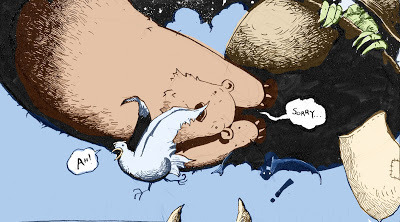 Here'a warm up sketch I did in watercolour, gouache and Photoshop. I'm pretty sure there's a story here...