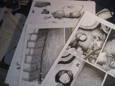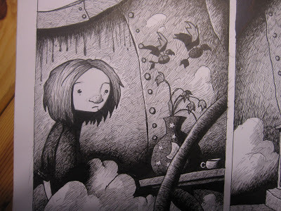 I've been working really hard and the truth is I'm a bit boring when I work hard. I just sit there drawing, absorbed in the world I'm drawing but my life outside of that is pretty uninteresting. This week I've been having 14 and 16 hour work days and enjoying them very much. But it's not much to talk about. I did just listen to Tim Curry reading the audiobook of Peter Pan, which was very good. And Henry just had his first school trip, to a salmon run. I'm hoping to take (Canadian) Thanksgiving Day off this Sunday. I could use it!