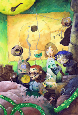 Also, this is my first commission completed entirely digitally. It was all done in Photoshop on my Cintiq. I've had the Cintiq a year but for some reason only felt confident enough to do a complete commission on it. What's interesting about working digitally is that it's not necessarily easier than working in pen and ink or even that much faster but the control is amazing. It's easier to translate what you imagine to the drawing. It's a very exciting way to work.