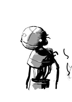 Yesterday my son was sitting on my lap reading an enormous pop up book. Ii had a sudden idea for Robot Museum I wanted to get down immediately. It was a design element I wanted to capture. I haven't bought a sketchbook in a while. Most of my funds went toward a new iPad. So I've been forgoing my usual purchases, drawing on computer paper rather than in a proper sketchbook. And of course there was nothing in reach to sketch with. I suppose I could've moved Henry off me but I hate doing that so I grabbed my nearby iPad and without giving it a thought I worked out the sketch one handed in Sketchbook Pro, my favorite sketching app. And I thought it turned out great! Maybe for the time being my iPad will be my sketchbook. It sure is effective.