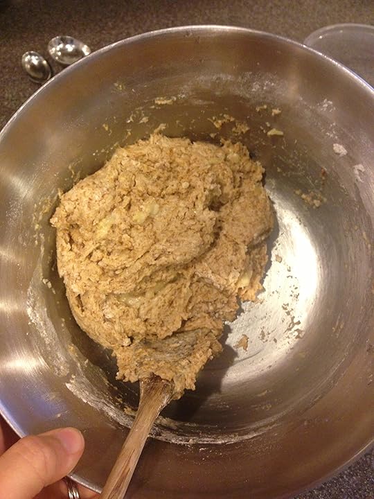 "Sarah jammed the wooden spoon into the dense dough several times as if the spoon were an icepick. "It's Sammy's turn to bring treats for his playdate."