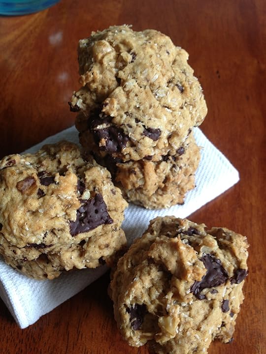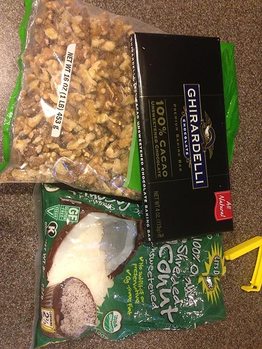 "It's not your skills I doubt, it's your ingredients," I said, picking up a jar. "Substitute nut butter, flax, protein powder, and agave. I'm surprised you don't put recycled paper in those things. Where's the chocolate?"