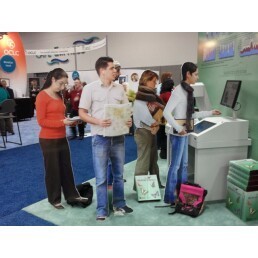I thought these guys were real people. I did a double take when I passed by and realized they were just made of paper. The guy running the booth said everyone thought they were real. He was selling some kind of scanning machine for universities so students just scan what they want and load to their jump drives or email documents to themselves instead of copying. Really cool. In the second picture I got him to stand there so you can see the difference between the 2-D people and the 3-D.