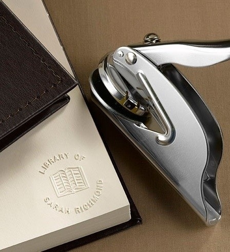 I have a set of embossers and use them to stamp books when I do signings. Each one is unique and labeled to match a particular book. At some point I might have to give this up since they’re heavy and I can’t really take all of them with me any more. But I love having something unique to mark signed books with. I use The Stampmaker to create mine.