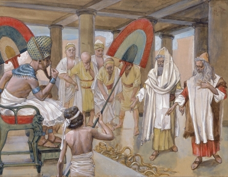Later in Moses‘s story in Exodus 4:2 God turned Moses’s staff into a snake and back. Later when Moses and Aaron appeared before the pharaoh Aaron’s staff turned into a snake, the Pharaoh’s sorcerers countered by casting down their own rods and similarly turned them into snakes. Aaron’s snake then proceeded to swallow the sorcerer’s snakes/rod.