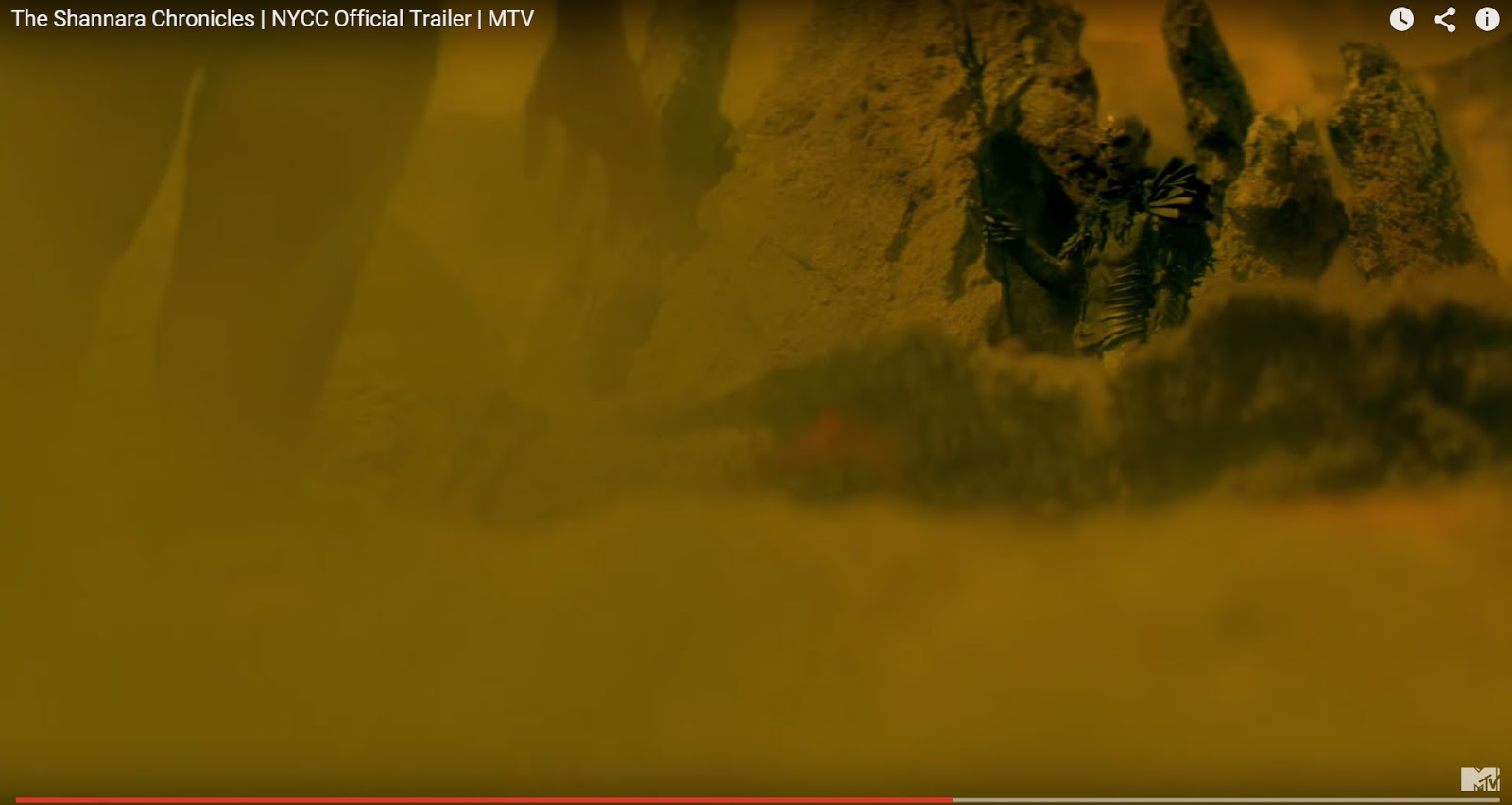 There is a lot of weird in the new Shannara Chronicles trailer that premiered at New York Comic Con this last weekend. So I decided to get my hands dirty and see what I could spot by going frame by frame. Also, you can click to "embiggen" any of these frames to get a better picture of what's going on.