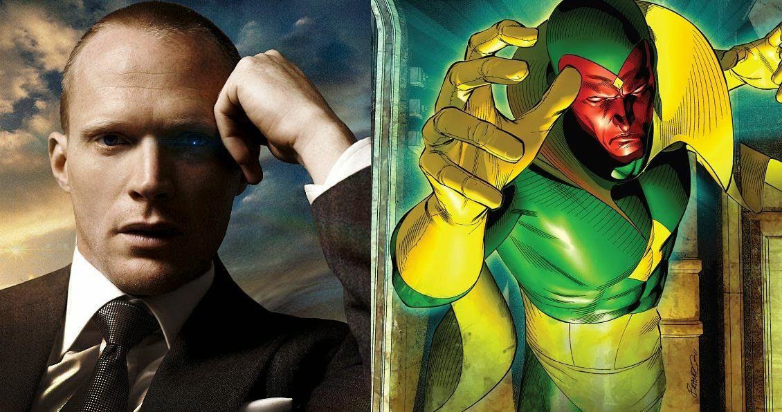 With Disney's announcement yesterday of the Avengers 2: Age of Ultron synopsis (you can read it HERE), I thought I'd talk about The Vision because he's one of three newly anticipated characters that we'll be meeting in the new movie next year (you got a taste of Quicksilver from Fox's X-Men: Days of Future Past).The Vision looks human, but wears a green cap thing that matches his green "skin-tight" one piece (do they call this a onesy?). He has a red face, wears yellow gloves and boots, and sports a yellow cape. He's going to be played by Paul Bettany who's been heard and not seen in the Iron Man movies (as the voice of the computer J.A.R.V.I.S.) as well as being in a number of high profile films (DaVinci Code, Master and Commander). It's going to be puzzling to hear him as J.A.R.V.I.S. in Iron Man's helmet while he's also The Vision (I wonder if there's going to be a connection??). I say this last part in parenthesis because "The Vision" is an android (think Data from Star Trek: The Next Generation).