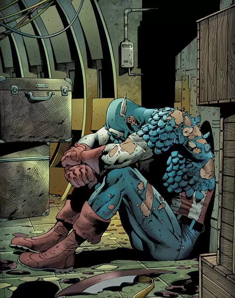 And then there's the image of Captain America without hope, sitting in a corner with his head down. This'll be a great scene for Chris Evans to do. I just hope Black Widow or Iron Man gets him to snap out of it. I can totally hear Robert Downey, Jr. picking up where Hudson left off in Aliens proclaiming "We're F*cked!" but meaning it in a fun way meant to drive someone who is obviously in a funk
