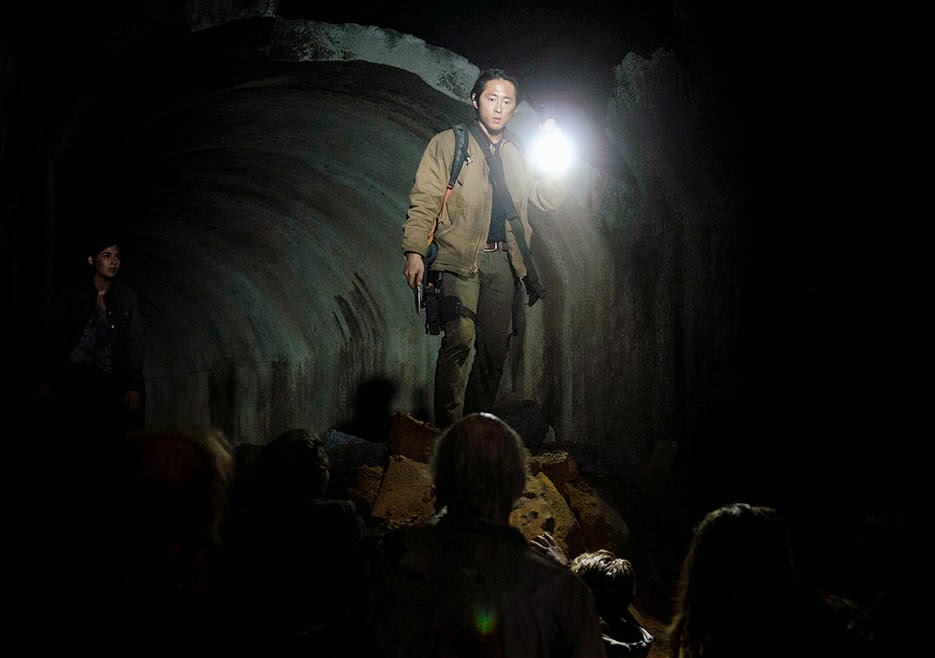 Glenn atop a cave-in looking down on a dark tunnel filled with undead.I saw Divergent this weekend, and I liked it even if I thought the training sequence went on too long. I suppose one shouldn't complain if you are completely and totally in love with the characters. At that point, the desire to spend more time with them overwhelms the biological need to move onto something else. But I never reached this stage with Veronica Roth's magnum opus. Rather, I'd check my watch every now and then, but in the end it was still entertaining.Dystopians are the new hotness these days (and to you literary buffs I acknowledge that there have always been dystopians like 1984, however, they never stole center stage like they do today). From Suzanne Collins to Allie Condie, you've got quite a plethora to choose from. But here's the thing: all of these are written for young adults. They star teenagers fighting for goodness against a backdrop of something that loosely resembles our world.