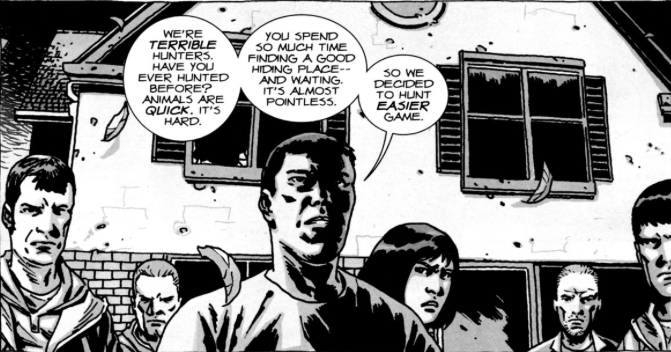 This one panel explains why I think Terminus is just bad. "Those whoarrive, survive...to be eaten slowly."This show is a master at making me care about the characters. The latest one that has grown on me is Eugene. He won me over my misleading Rosita back to the tunnel just to make sure Glenn and Tara made it out alive.