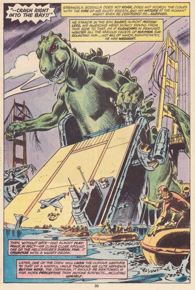 I'll just get right to the point: there's a new extended trailer out for Godzilla (due out next month) and you should watch it to prove you're not a complete dullard. Most of the footage in it seems to be new. I don't know if you're one of the people that's following this like I am (I am my own particular brand of crazy), but it is pretty exciting. At around the 2:15 mark there's a glimpse of what looks like a new kaiju through the window of a train. And when Bryan Cranston seals his wife into a contaminated area of the plant they're both working at there's a pink/lavender mist that looks really ominous and has nothing to do with supporting breast cancer. I kept asking myself "What is it?" which is probably what I'm supposed to be asking. But when I ask questions like that I just produce even more questions:1) Is the Godzilla in this movie going to be some kind of angry god? Or will he be Earth's protector and champion like Toho later evolved him into?