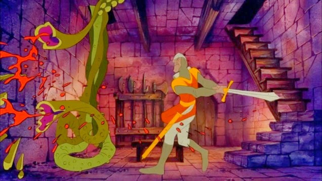 Were you around twenty years ago? If so, you may remember the arcade game "Dragon's Lair." It was the first video game that I can recall that charged fifty cents at the arcade. I used to go there with a friend on Friday night and go through ten bucks in quarters trying to finish it. I never actually made it to the dragon, so watching this playthrough was kind of fun because it allowed me to see the ending that I never achieved myself.Boy, video games sure have come a long ways. But there's a certain charm to Don Bluth's animation that still