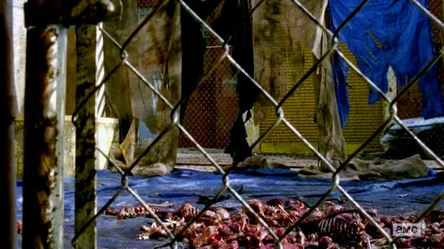 Sunday's "A" episode of The Walking Dead had what looked like aslaughtering pit filled with human skeletons. I could be wrong though.If there is insecurity in my writing, it's that the things that I like to read or watch broach subjects so hard-hitting and in ways that are so real, that I doubt my own abilities to recreate the same. I think I'll never be able to evoke this kind of emotion. Take dark fiction as an example. Everyone knows that I'm a fan, especially when it comes to science fiction that takes on a horror twist. When I'm engrossed in these kinds of stories, inevitably I compare them to my own works. The little voice inside pipes up and says, "Your stuff is boring compared to this." Maybe it's just an uncomfortable truth; I guess only a lifetime of writing will give me the perspective to answer this to my liking.