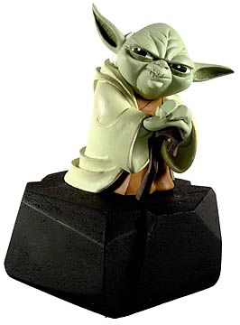 Anyway, my maquette is well constructed, looks nice, is very nerdy, and I like it! I bet Sheldon Cooper owns one. Yoda doesn't need any explanation as anyone that follows Star Wars knows exactly who he is, so I'm just going to say this: one of the things I like about Yoda in The Clone Wars is that he really doesn't fight. He's simply a teacher and takes that role very seriously. I just wish someone had told him how to brush his teeth because Yoda's teeth are atrocious. Also, has anyone ever seen a female version of Yoda's race? I'm kind of wondering what they look like.