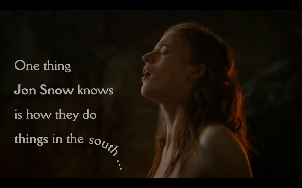 I like two things about Ygritte. 1) How she calls Jon Snow by first and last name.2) How she always says, "You know nothing Jon Snow." And as this picture