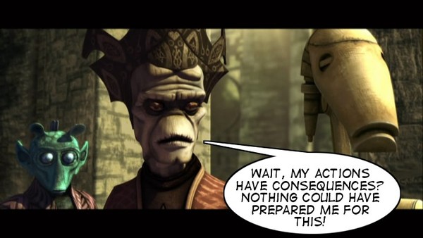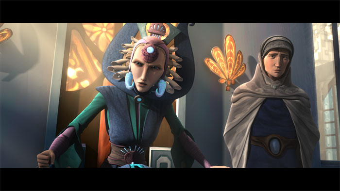 4) "The Mandalore Plot" is a mystery/thriller that unfolds intricately and weaves its way into other storylines that pass from episode to episode. I like that. We also get a recurring villain in the Governor of Concordia (moon of Mandalore).