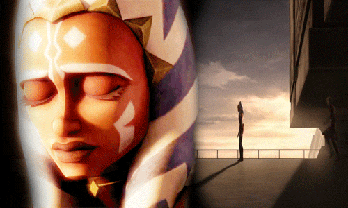 The very last scene of the Clone Wars. It ended with Ahsoka Tano leavingthe Jedi Order. Anakin begged for her to return. But she refused. And