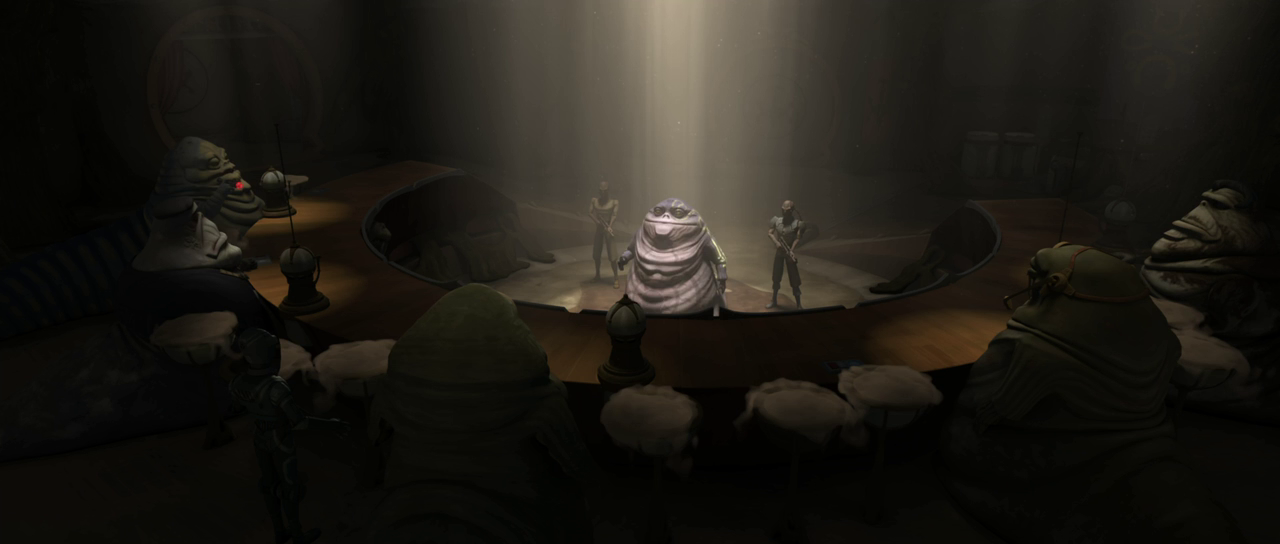 Ziro the Hutt going before the Hutt Grand Council in the episode "Hunt for Ziro"The Clone Wars did for Star Wars canon what the movies simply couldn't do even in six films because the universe is so huge. For me, one of the more intriguing characters was always Jabba the Hutt. I always wanted an answer to the question: where did the Hutts come from? To know this requires a little information borrowed from the Clone Wars Wiki: