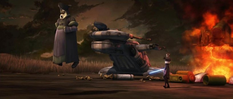 Jedi Master Mace Windu sent "I'm a gonna die" to the planet of Ryloth where he never had much hope (fancy that). Di fought on the ground against the droid army as a bad guy named Wat Tamor led an invasion of the Twi-lek homeworld.