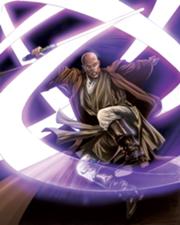 "Six there were for generations of Jedi. The seventh, is not well-known. Powerful form it is. Deadliest of all. But dangerous it is, for its master as well as its opponent. Few have studied. One student alone, to mastery has risen."Here's a clip from the 2003 Clone Wars that shows Mace Windujust being completely awesome. The animation is poor but it's really fun to watch. You can kind of see the makings of the C.G.I. Series that aired on Cartoon Network years later.