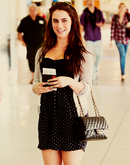 Jessica Lowndes. She's best known for her role as Adrianna Tate-Duncan in the CW's mega smash hit 90210, the reboot of the ultra successful Beverly Hills 90210 (all of the alumni are now Hollywood washouts and Aaron Spelling is dead).Anyway, she's seen here with a designer purse by Coco Chanel on her arm.