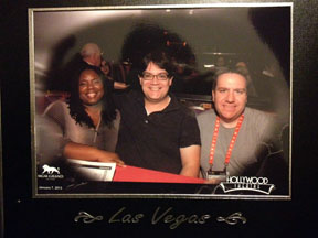 And here's a picture of my friend Tomeka on the left, me in the middle, and James on the right.Today, I'm scheduled to appear on Cherie Reich's blog at some point. Thank you so much for following and commenting on my book tour. Tomorrow I will post a bunch of pictures that I take from CES (my day begins at 7 a.m.) And then at night we are seeing "The Jersey Boys" at Le Theatre des Arts in the Paris Hotel and Casino.