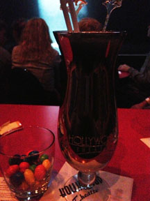 This is my glass from the pina colada that I ordered. It's a collectible glass so I get to take it home with me and put it in the cabinet where I keep other things that remind me of trips that I've taken. We had really good seats to the magic show, just one row of folks before the stage.