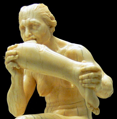 Cool statue, eh?Ever heard of Armin Meiwes? He's serving a life sentence in Germany after he killed and ate a willing victim that he met over the internet. The case got a lot of attention as people debated whether it was truly murder given the victim's conscious consent to the act. Here's the link to his Wikipedia page.Can you believe that this fetish is real? That there are actually people out there who want to get eaten because it is arousing? Clive Barker could not top this real life story.
