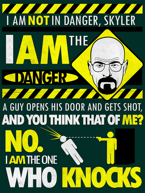 Mr. White reminding all of us why chemistry teachershave the most fun.It’s because he’s diagnosed with lung cancer and given only a short time to live. Walter wants to provide for his family, and he knows he can’t do that on $40,000/year from teaching and whatever pocket change he gets at the car wash. Cooking meth seems like a good way to make some quick cash that can provide for his family after he’s gone.