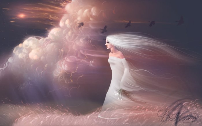 And thus the tale unfolds. Through seemingly random, chaotic, and unpredictable events, she meets people in a world made as lovely as strolling through a field of golden grain at the end of summer. It's surreal, much like the feeling I get from gazing at a painting by artist Brett Cushing entitled "The Departure of Summer." It leaves me with a soaring sense of melancholy. The painting has storm clouds on the horizon and birds in the sky. I think, "those birds are rising before a hot wind and see all the world in its beauty before winter comes." And death is the winter of our lives.